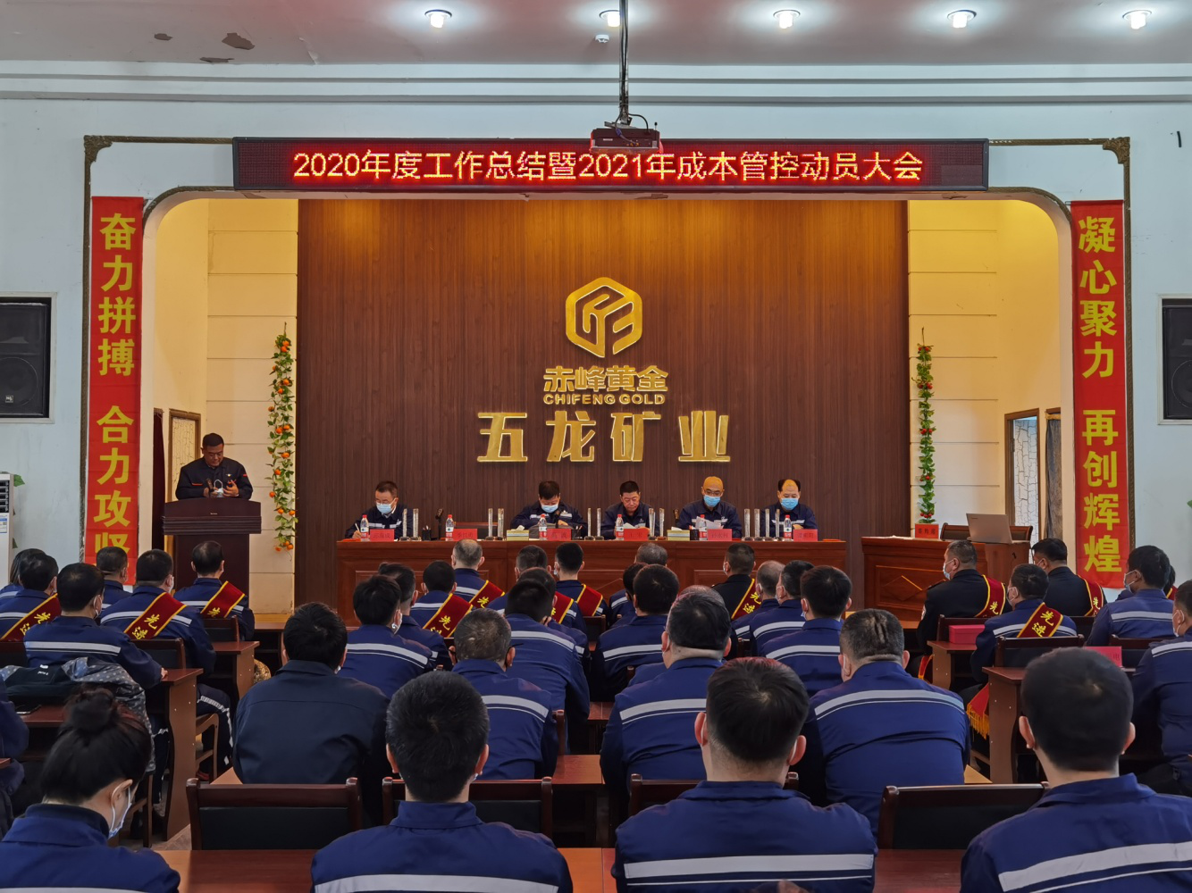 2月5日上午9時,五龍礦業(yè)組織召開了2020年度工作總結(jié)暨2021年成本管控動員大會。赤峰黃金董事、執(zhí)行總裁、國內(nèi)礦業(yè)部總經(jīng)理兼五龍礦業(yè)總經(jīng)理高波,國內(nèi)礦業(yè)部副總經(jīng)理兼五龍礦業(yè)常務副總經(jīng)理王宏,國內(nèi)礦業(yè)部副總經(jīng)理兼五龍礦業(yè)副總經(jīng)理季紅勇,五龍礦業(yè)副總經(jīng)理孫永利、總工程師邱海成、總經(jīng)理助理譚明陽,以及機關(guān)全體干部,各分礦、選礦廠區(qū)段長以上人員共計91人參加會議,會議由季紅勇主持。